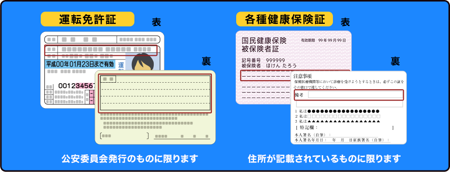 ※運転免許証・健康保険証は表・裏の両面をコピーしてください。