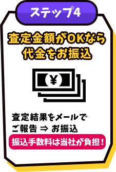 また、①の場合であっても、買取査定結果メール報告から7日以内にご返信がない場合は、査定内容をご承認いただいたものとさせて頂きますので、キャンセルや返送は行えません。